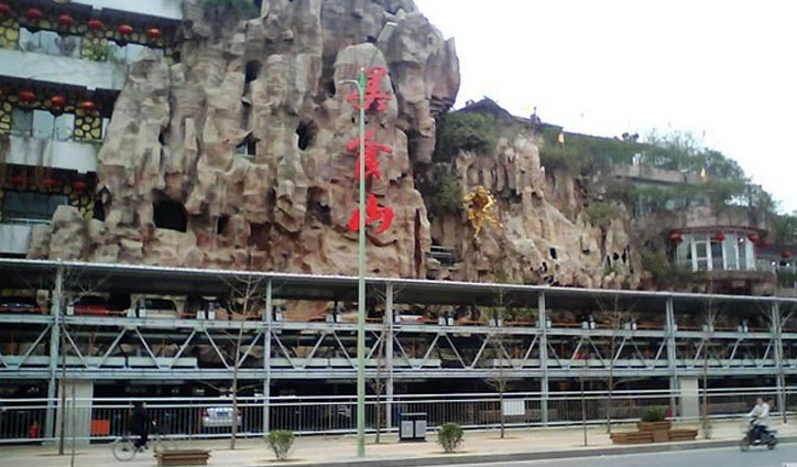 “唐人美食山”俗名“猴山”,坐落于保定市高新區天鵝路111號。是河北餐飲業中規模最大的專業性餐廳。家喻戶曉,遠近聞名。整體建筑別具匠心,古今稱奇。抬眼望去,猶如一座巨大的盆景,有“都市里的山莊”之美譽。美食山大字金光閃閃,孫悟空雕塑栩栩如生,一面面彩旗迎風飄揚,堪稱建筑史上的杰作。