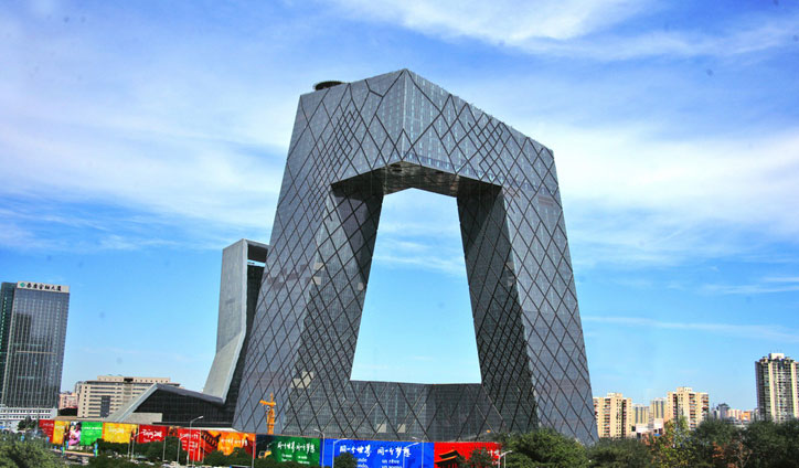中央電視臺新臺址位于北京市朝陽區東三環中路,緊臨東三環, 地處CBD核心區,占地 197000平方米??偨ㄖ娣e約55萬平方米,最高建筑234米,工程建安總投資約50億元人民幣。建設內容主要包括:主樓(CCTV)、電視文化中心(TVCC)、服務樓及媒體公園。由荷蘭人雷姆?庫哈斯和德國人奧雷?舍人帶領大都會建筑事務所(OMA)設計。中央電視臺總部大樓建筑外形前衛,被美國《時代》評選為2007年世界十大建筑奇跡,并列的有北京當代萬國城和國家體育場。中央電視臺總部大樓從最初的50億工程預算,一路攀升至近200億。并且支付給設計方大都會建筑事務所高達3.5億的設計費用,平均達630元每平方米。